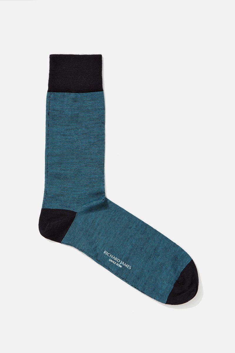 TIE – NAVY & TEAL SHANTUNG SILK WIDE STRIPE