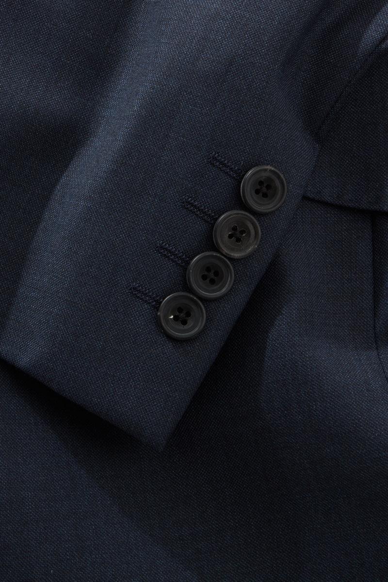 Fully lined, with horn buttons, double vents, a working button hole and flower loop, two slanted flap pockets, the right of which conceals a coin pocket, two inside breast pockets and inside pen and ticket/smartphone pockets.