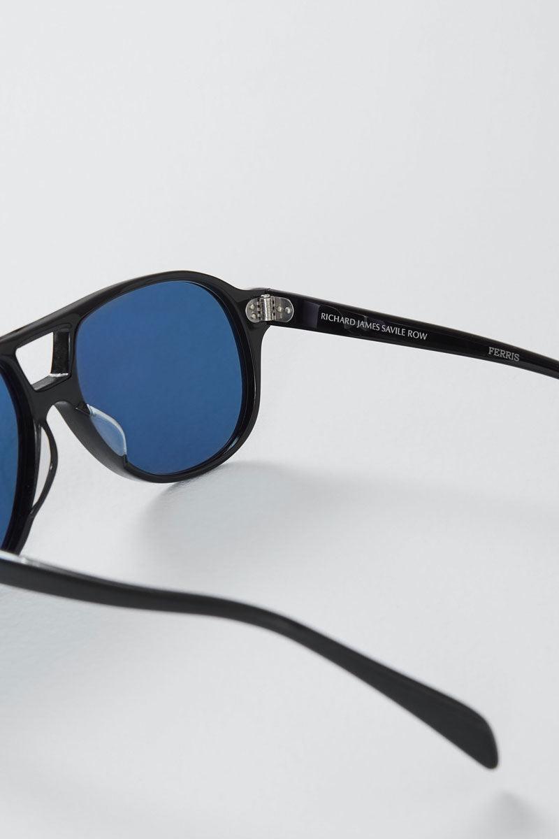 A pair of our sharply individual aviator-style Ferris sunglasses with our softly textured, hand-etched scratched Havana brown frames.