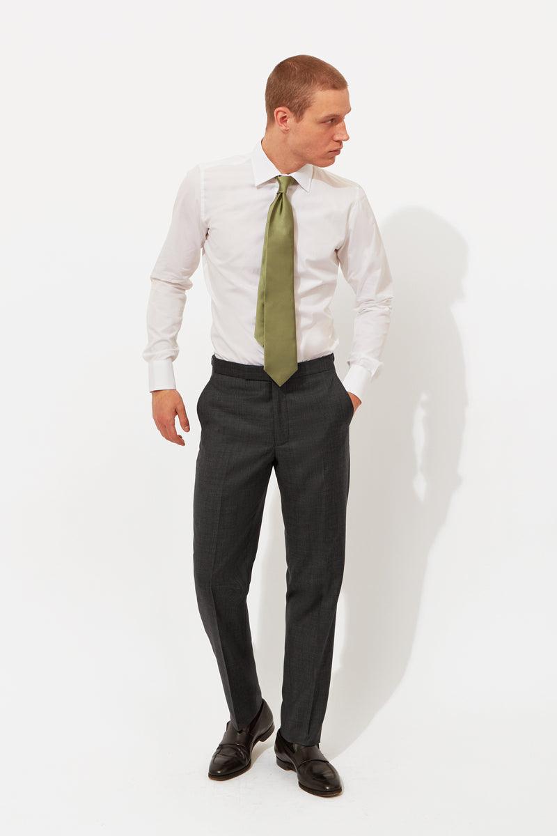 Our sharp, very subtly textured and sheened Hyde two-button wool twill sharkskin suit.